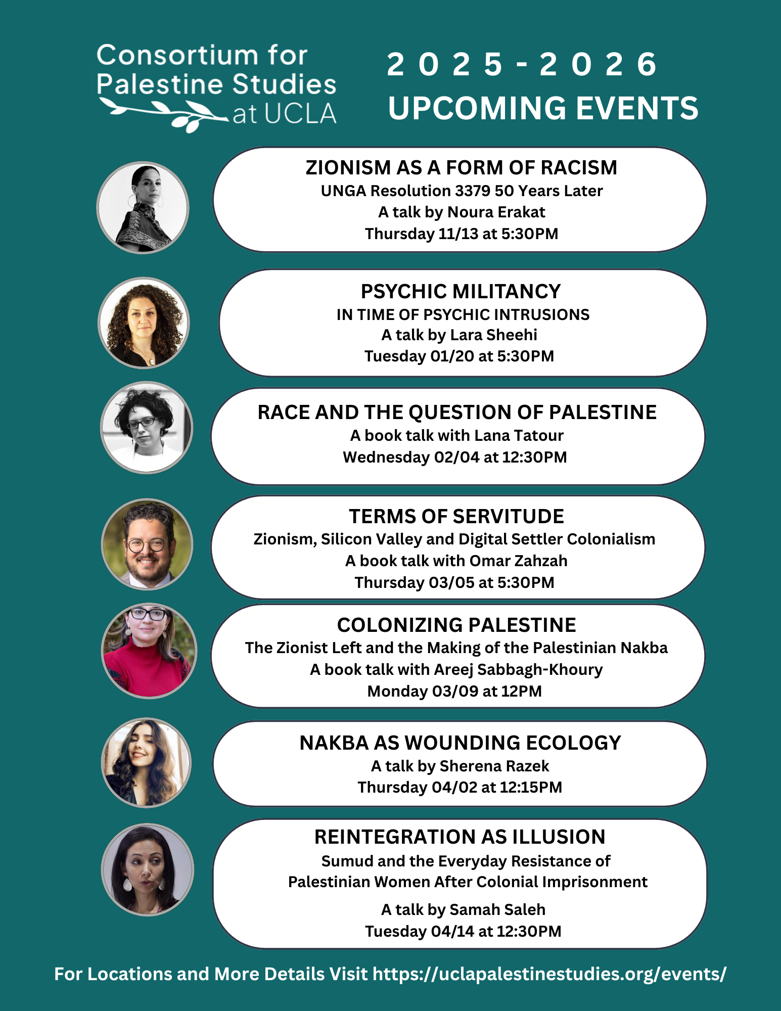 This year the UCLA Consortium for Palestine Studies is sponsoring a series of academic events including talks, film screenings, and performances.
